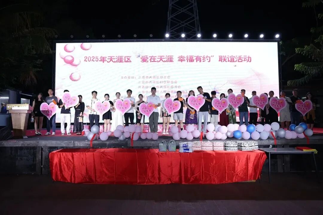 为拓宽全区广大单身青年职工交友渠道,搭建相互交流的平台,助力解决单身青年职工交友、婚恋问题,引导青年男女树立正确的婚恋价值观,促进社会和谐发展,8月23日,由天涯区总工会、区妇联、共青团三亚市天涯区委员会、区人民武装部政治工作科联合主办的2025年天涯区“爱在天涯 幸福有约”联谊活动在田舒乐共享农庄成功举办。天涯区总工会常务副主席陈少敏、团区委书记王后杰、区妇联主席黎敏敏出席活动,来自各机关、企事业单位及部队的100余名优质单身男女青年职工、部队官兵欢聚一堂,浪漫相约。